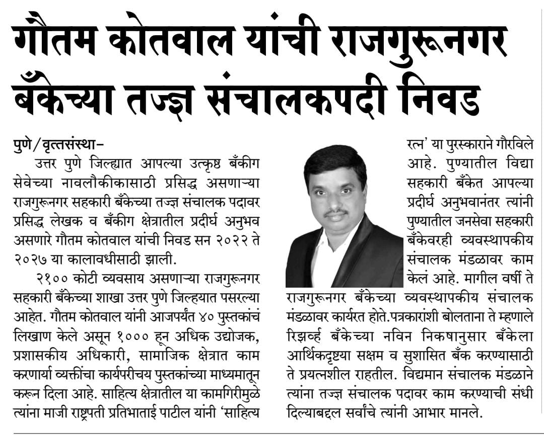In 2021, he was appointed Board of Management Member of Janseva Co-operative bank Ltd Pune. Since 2023 he is board member of Rajgurunagar Sahakari Bank Ltd. He also worked as Board of Management member of Pune Cantonment Co-operative Bank Ltd.